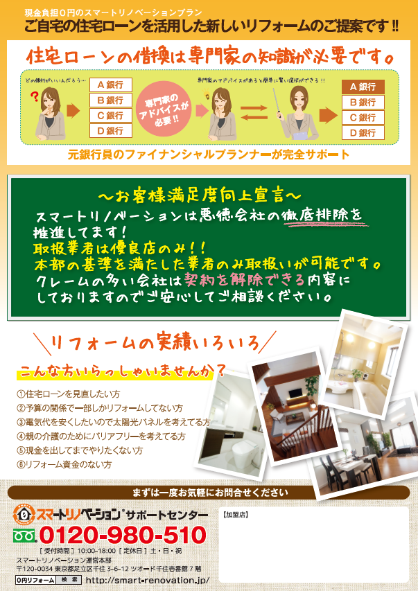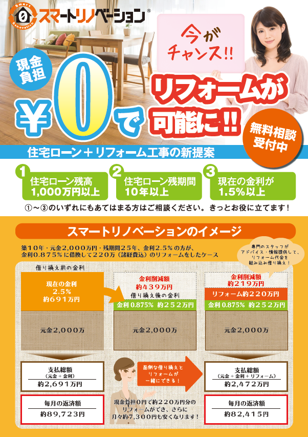 専門スタッフが削減した金利分が現金負担0円枠となり、削減分まで0円でリフォームができます!