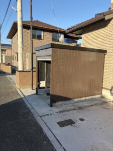 甲府市のお客様より、物置のシールの撤去と塗装のご依頼をいただきました。施工前